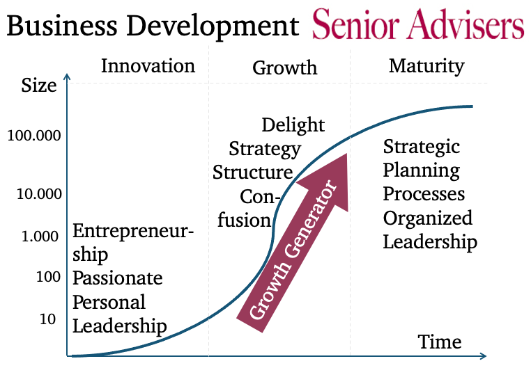 We guide companies to use the Growth Generator for successful business development. The nine gears are Team, Products, Business Model, Customers Acquisition, Partners, Competition, Internationalization, Customer Satisfaction and Reality Check.